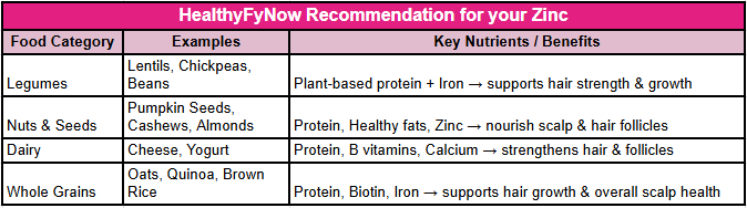 - Why it helps: Zinc plays a vital role in hair tissue growth and repair. It helps keep the oil glands around the follicles working properly. Deficiency can lead to hair loss and slow growth.